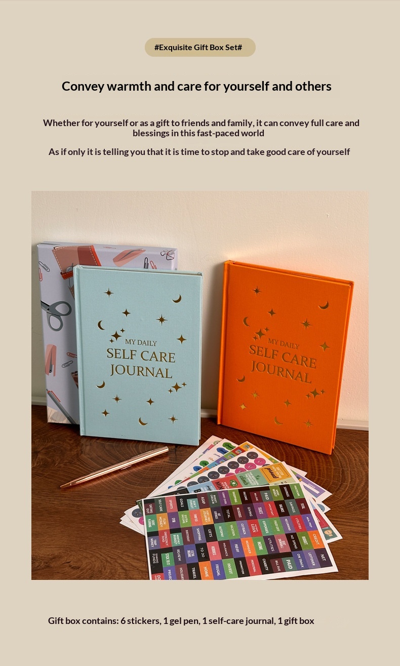 Specifications: The set includes: 6 stickers, 1 neutral pen, 1 diary, 1 gift box.